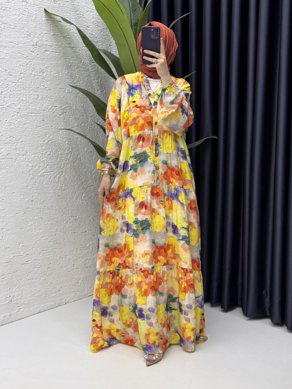 Helen Elbise Tesettür Giyim Sarı