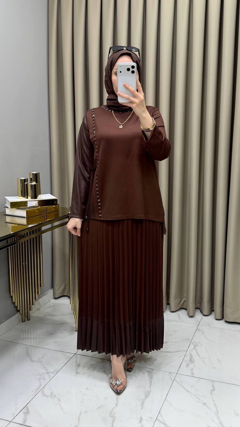 Helen Etekli Takım Kahve Kahverengi