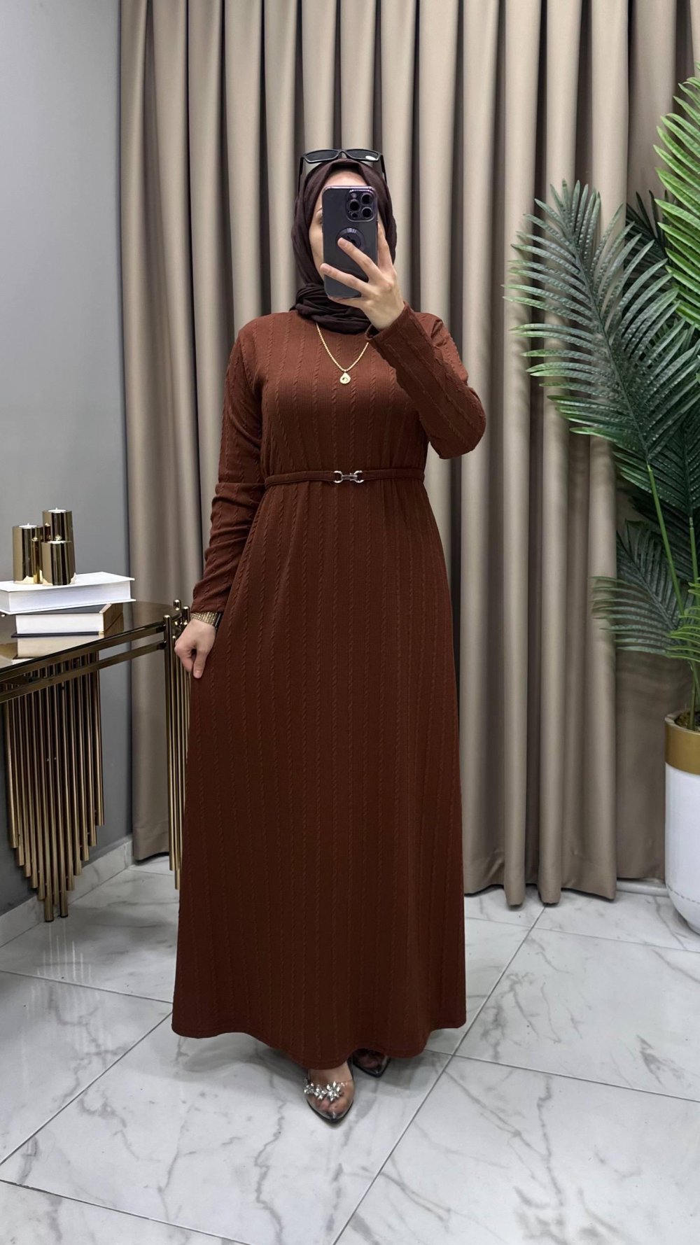 Hüda Elbise Kahve Kahverengi