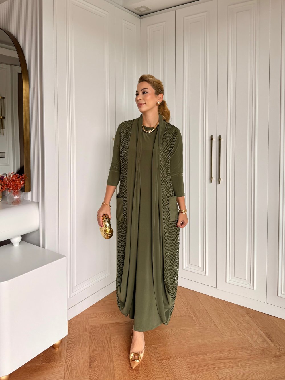 İkbal Elbise Takım Haki Haki