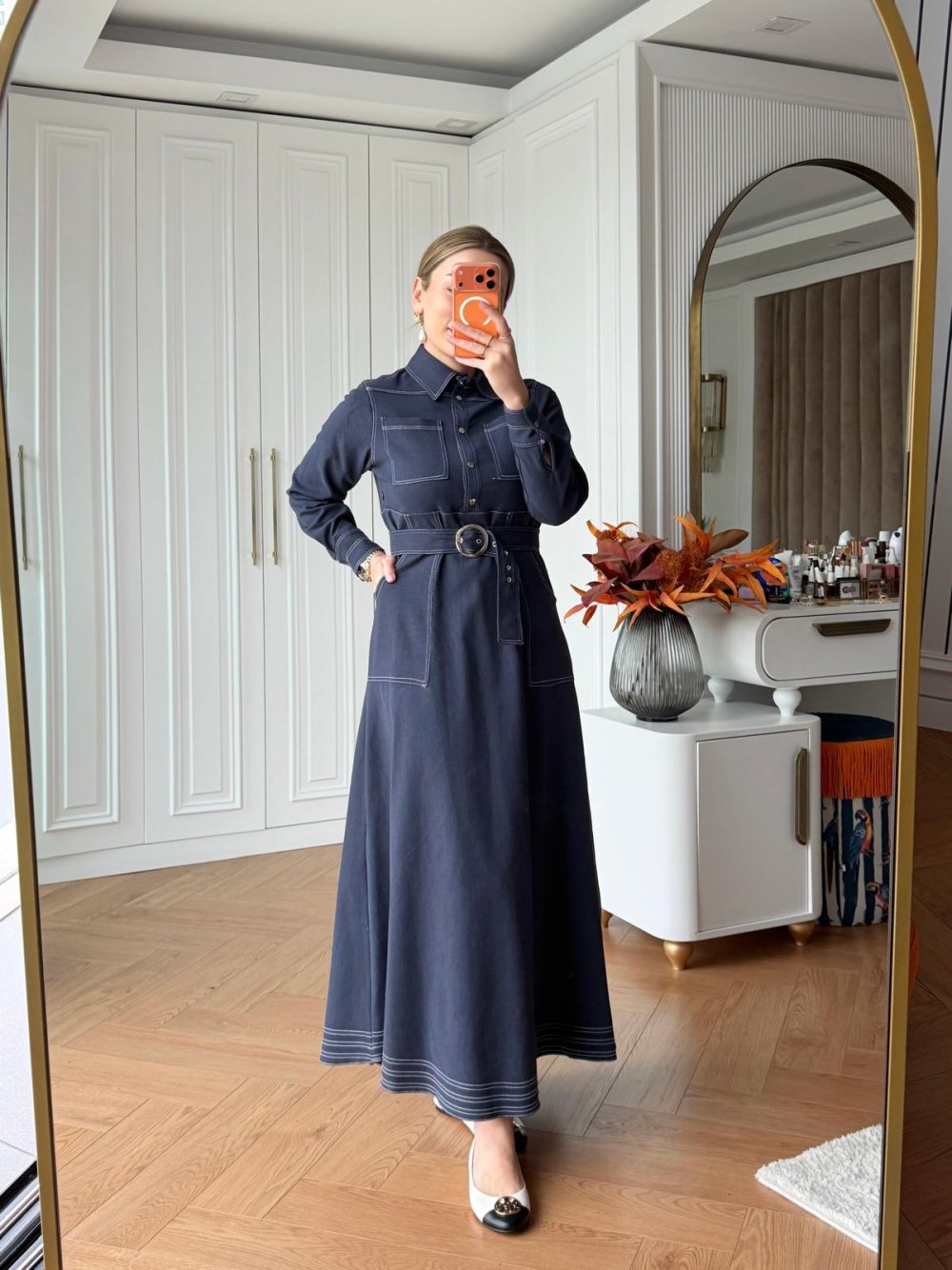 Elbise Çift Cep Kapak Detaylıdır.