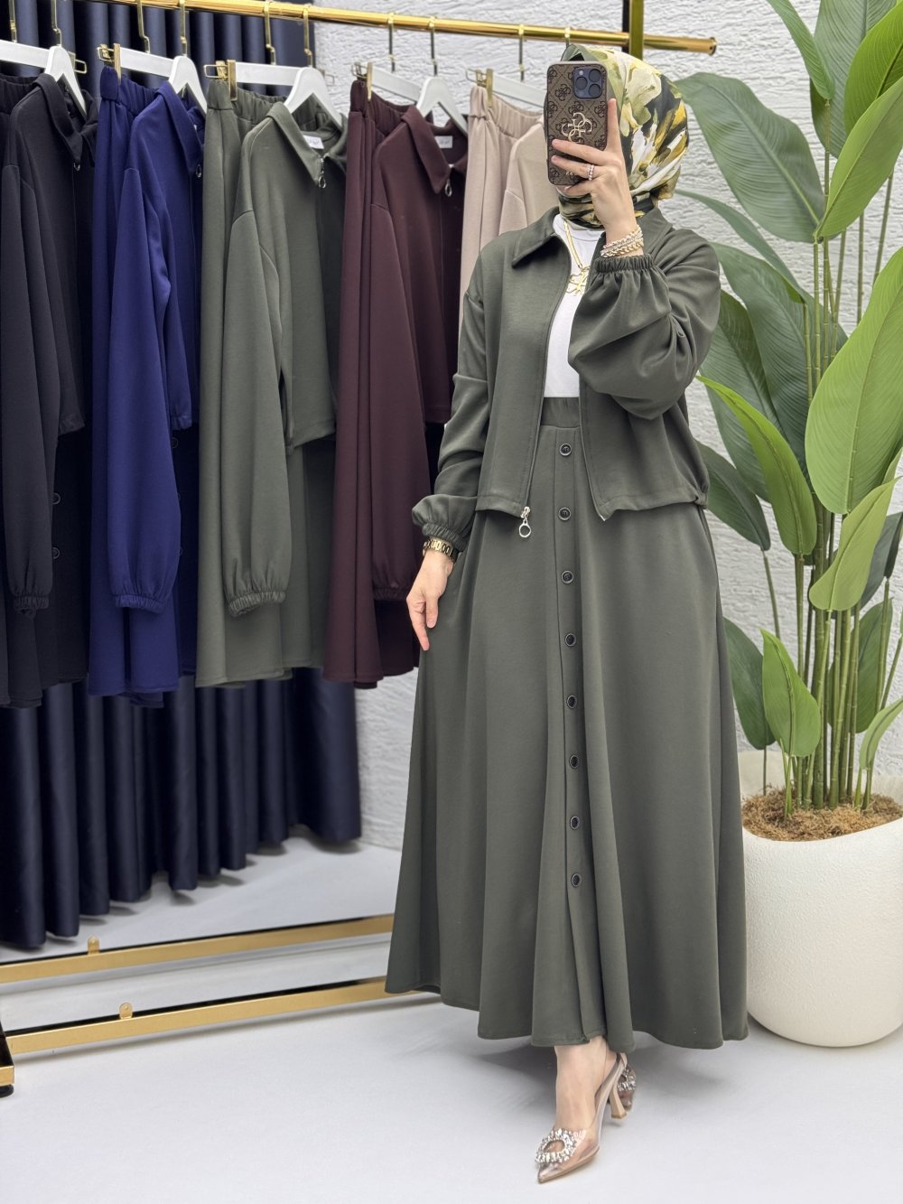 İlve Etekli Takım Tesettür Giyim Haki