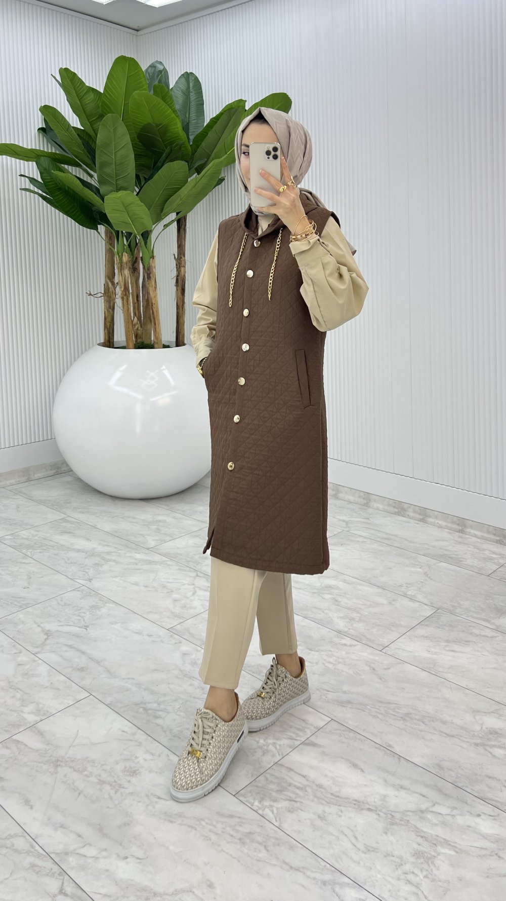 Kahve Kapitone Yelek Tesettür Giyim