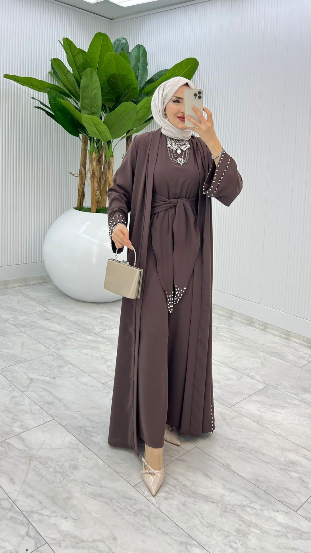 Kahve Premıum Faya Abaya Tulum Takım Tesettür Giyim