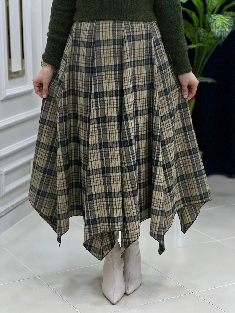 Kışlık Ekose Etek Şık ve zarif hanımlar Etek kod Kırlangıç: 13129 Tek etek fiyat kargo ücretsiz Beden 36 38 40 42 Kumaş Türü: pamuklu ekose Etek uç boyu: 90cm Etek kısa boy 75.77 cm Etek beli fermuarlı
