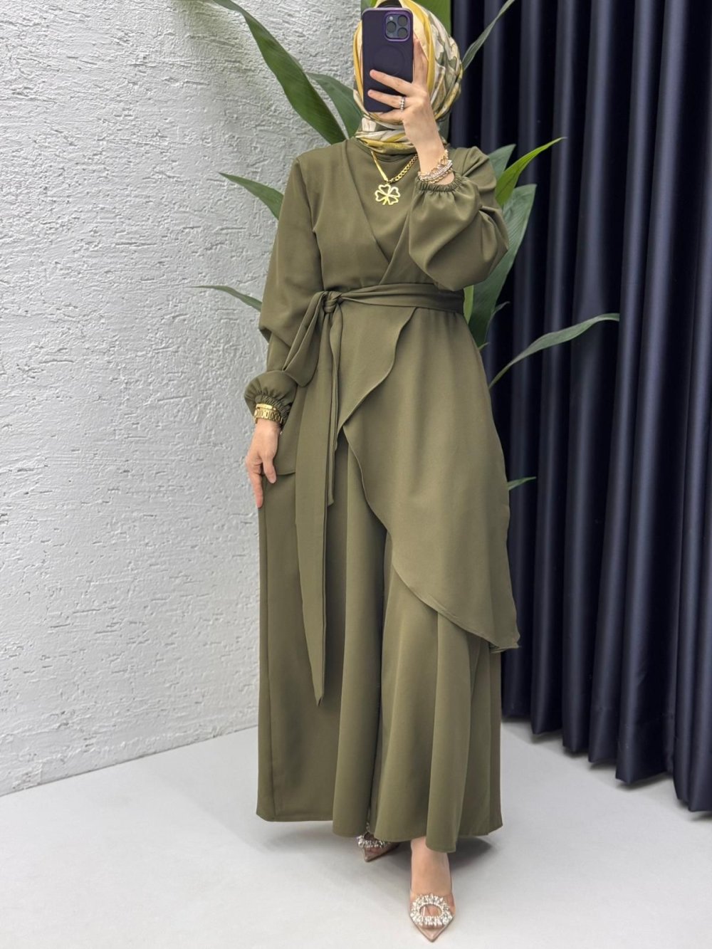 Koyu Haki Hanzade Takım Tesettür Giyim