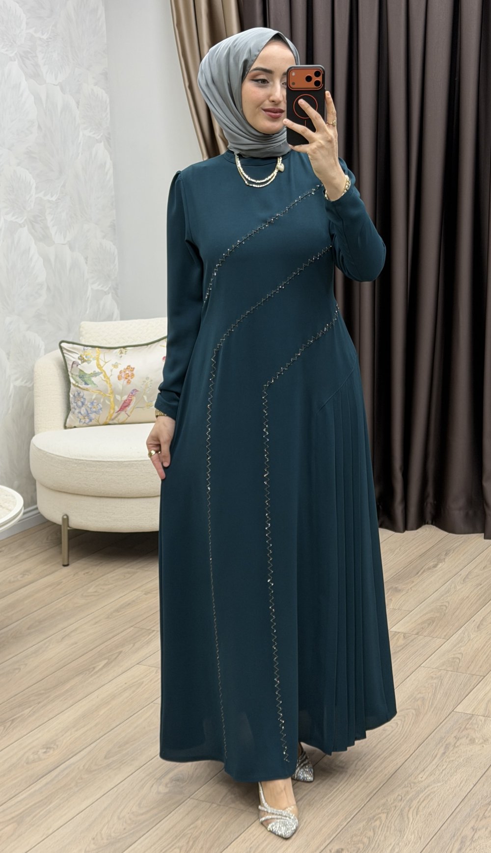 Rahatlık ve şıklığı bir araya getiren Kristal Abiye sade ama zarif duruşuyla günlük kombinlerinizi güçlendiriyor. Yumuşak kumaşı ve esnek yapısı sayesinde gün boyu konfor sunarken, modern kesimiyle stil sahibi bir görünüm yaratır. Her ortamda şıklığı yakalamanızı sağlar.