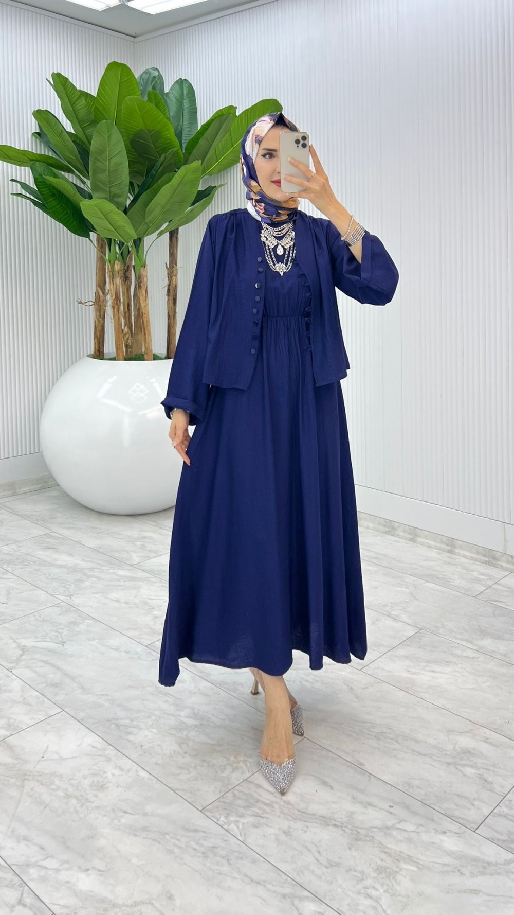 Lacivert Halime Elbise Takım Tesettür Giyim