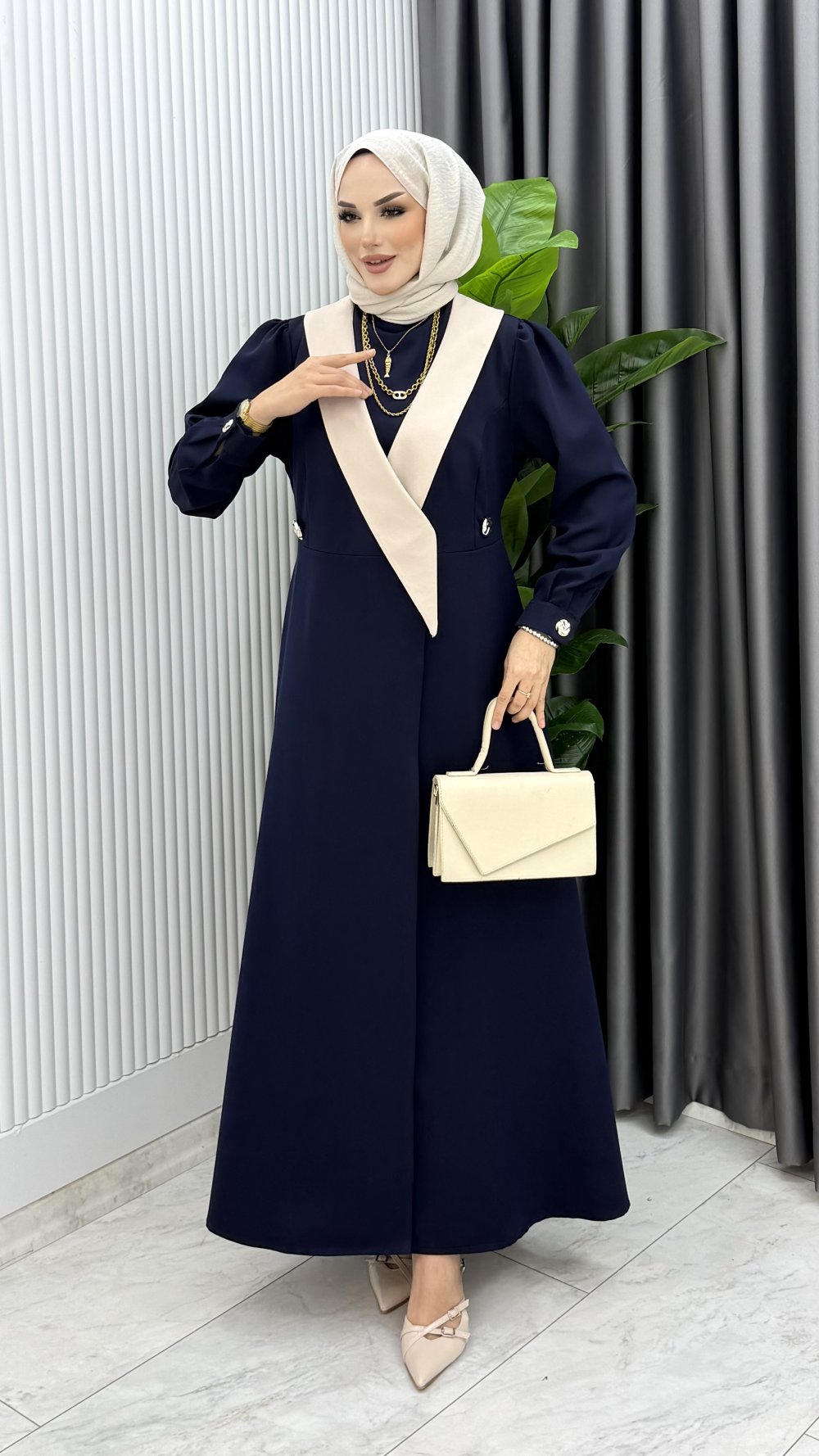 Lacivert Yeşim Uzun Ceket Kap Ferace Tesettür Giyim