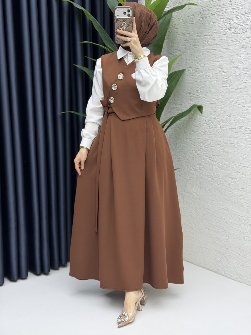 Lalezar Etekli Takım Tesettür Giyim Kahve