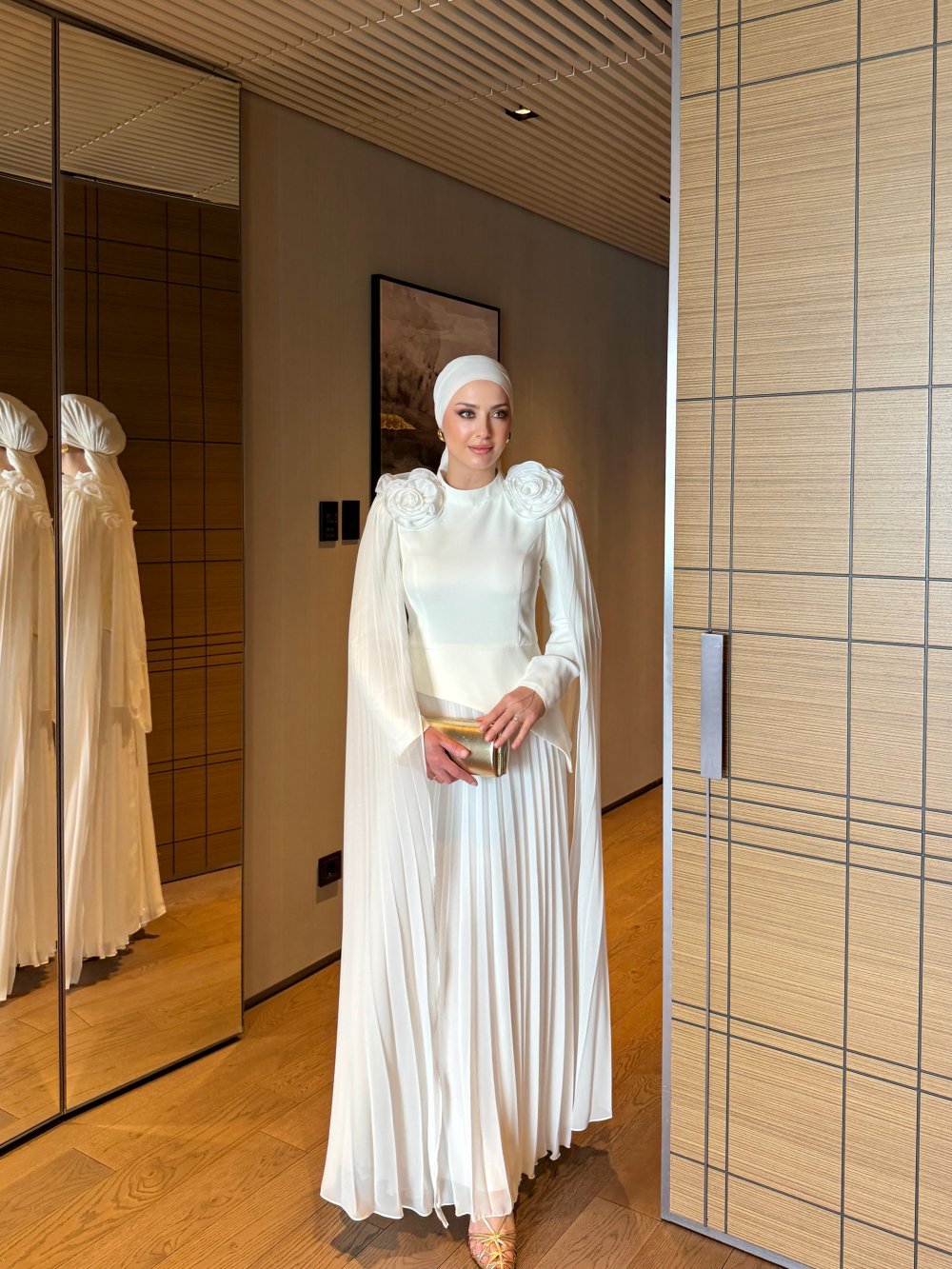Ürün 1. Sınıf Üst Krep Alt Kısım ve Pelerin Şifon Kumaştır.