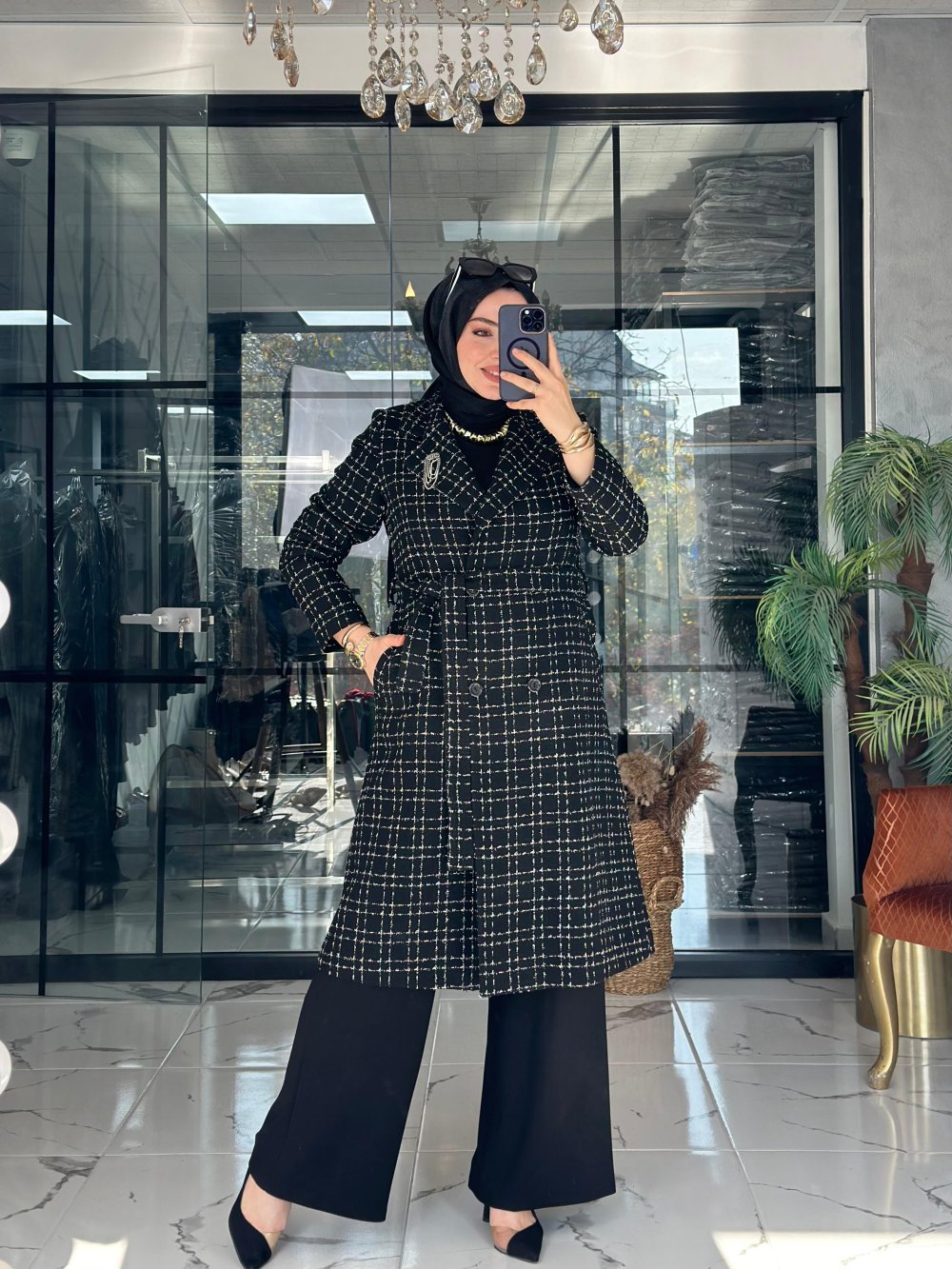 Kumaşı tüvit kumaştır. Seyyar kemerlidir. Cepleri mevcuttur.