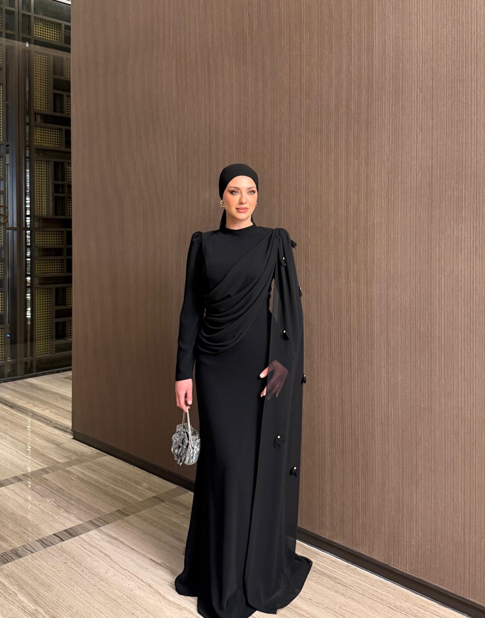 *Abiyenin pelerini çiçek detaylı, taşları çakım, arkası fermuarlı önü drape detaylıdır.Göğüs desteği bulunur.