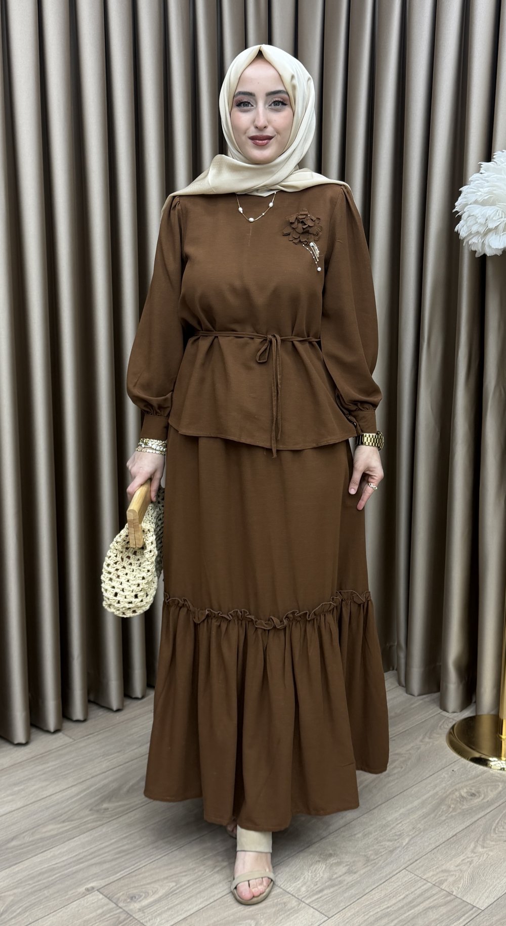 Rahatlık ve şıklığı bir araya getiren Manolya Etek Takım,sade ama zarif duruşuyla günlük kombinlerinizi güçlendiriyor. Yumuşak kumaşı sayesinde gün boyu konfor sunarken, modern kesimiyle stil sahibi bir görünüm yaratır.