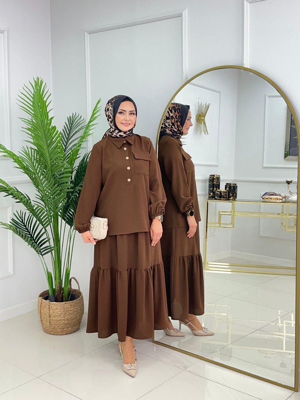 MERCAN ETEKLİ TAKIM - KAHVERENGİ
