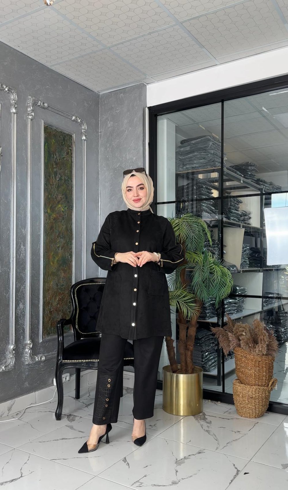 Kumaşı süettir. Önü çıtçıtlıdır. Kollarında fermuar vardır.
