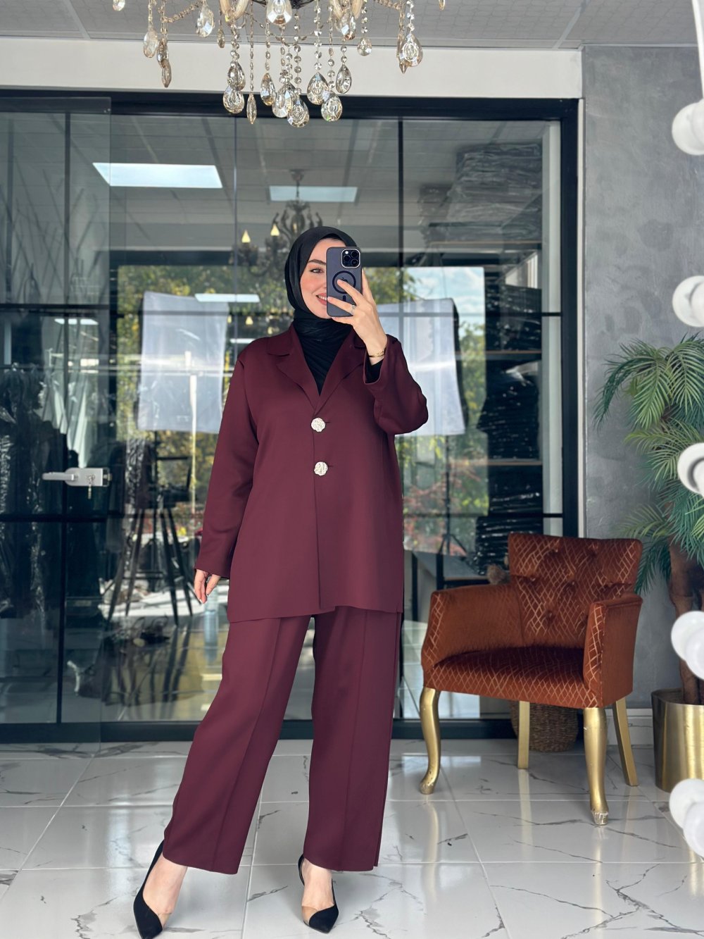 Modern Ceket Takım Bordo Bordo