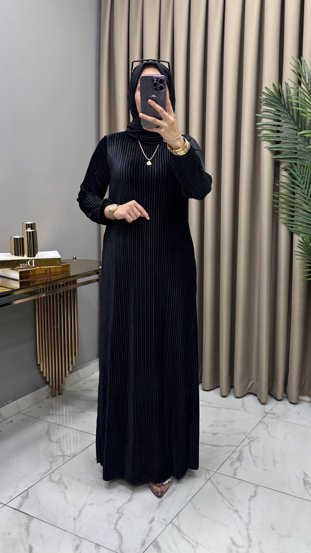 Multi Piliseli Kadife Elbise Siyah Siyah