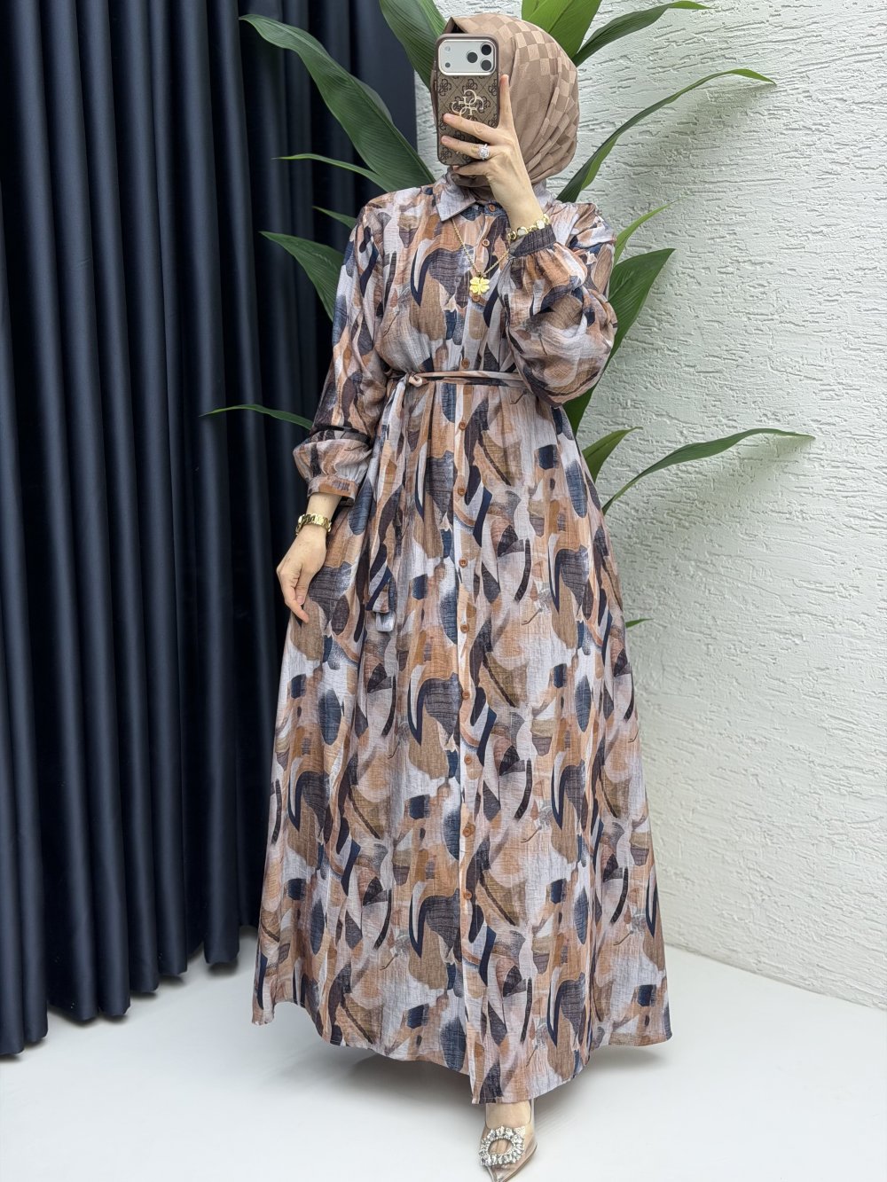 Boydan düğmeli giy çık elbisemiz en güzel deseniyle satışta