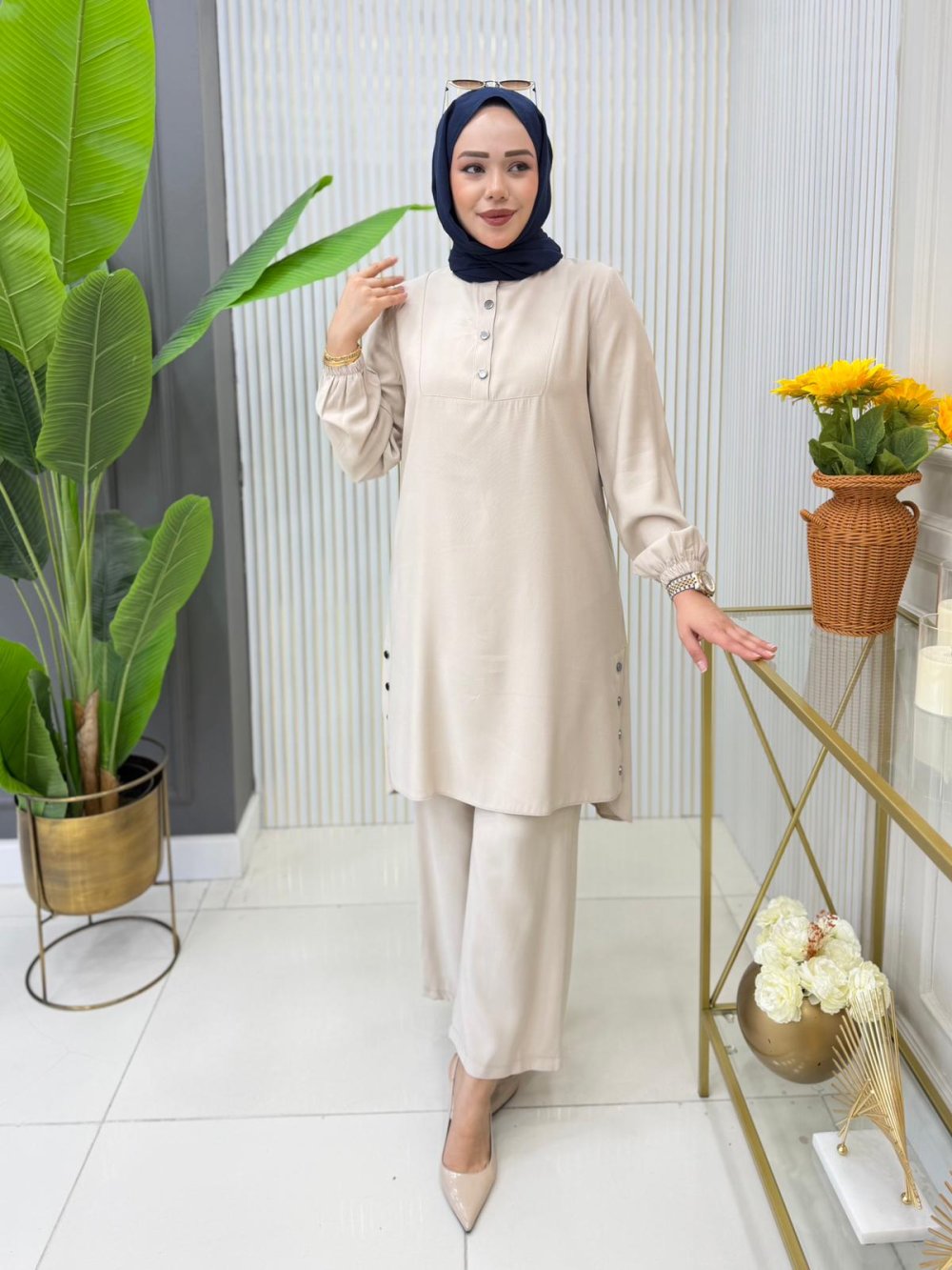Nihan Tunik Takım Krem