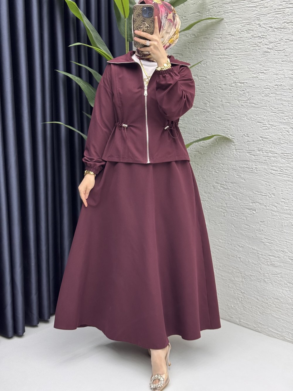 Nilay Etekli Takım Tesettür Giyim Mürdüm