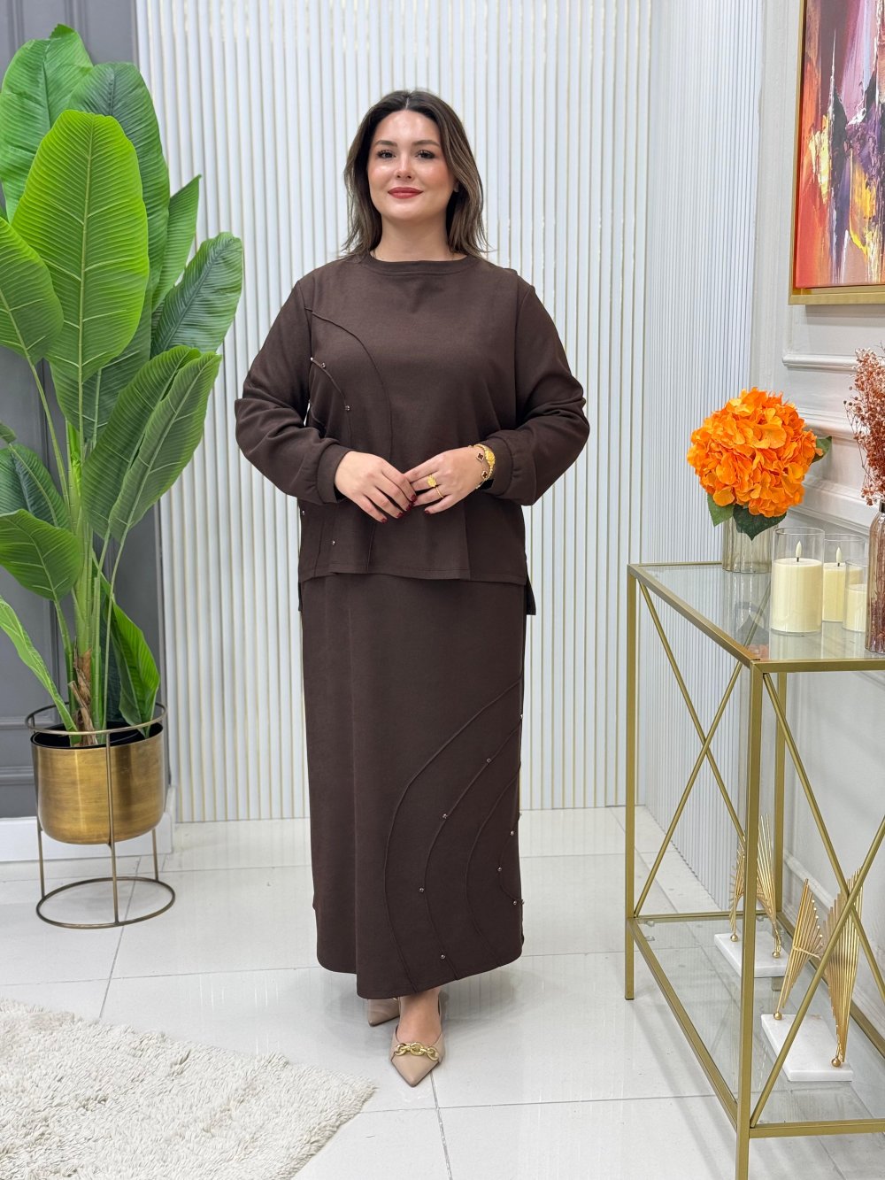 Tunik ve Etek Taş Detaylıdır.
