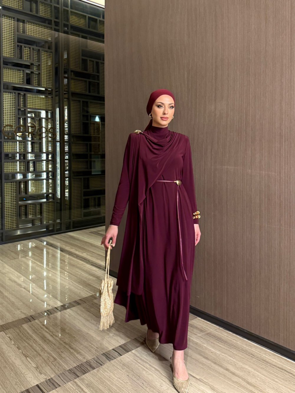 Elbise Gold Detaylı Seyyar Kemerlidir.