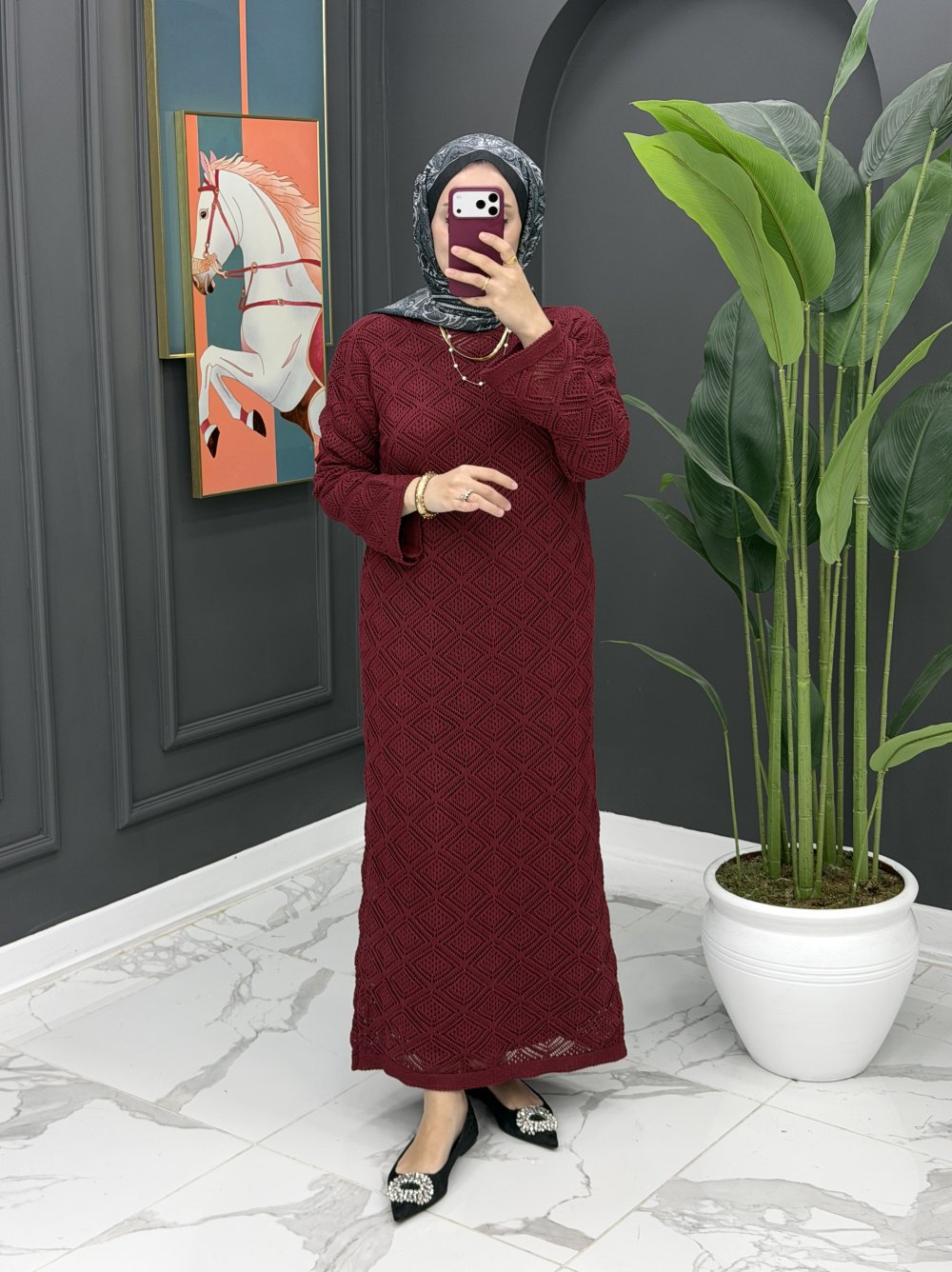 Örme İçlikli Elbise - Bordo Bordo