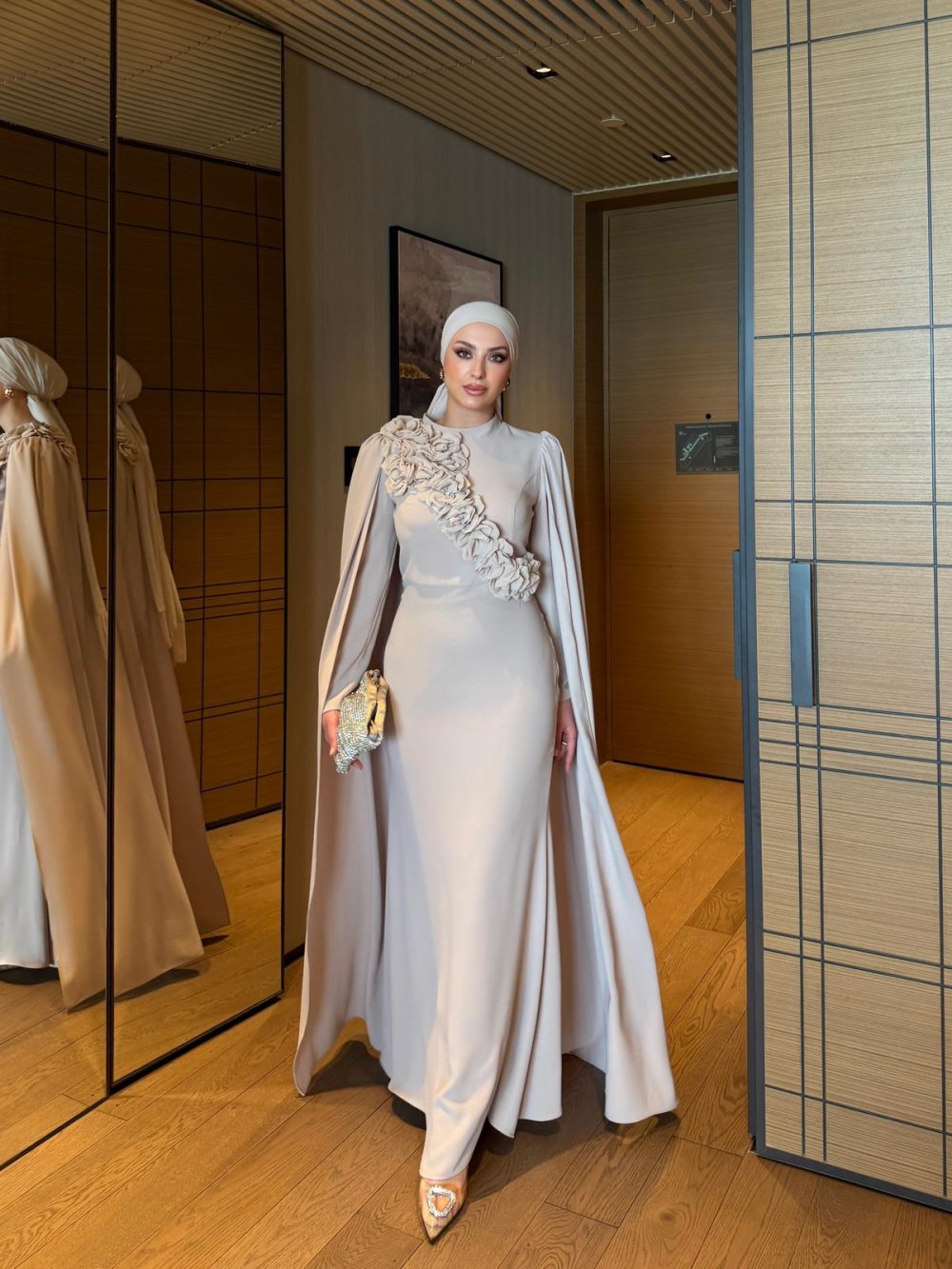 Kolları pelerin detaylıdır.