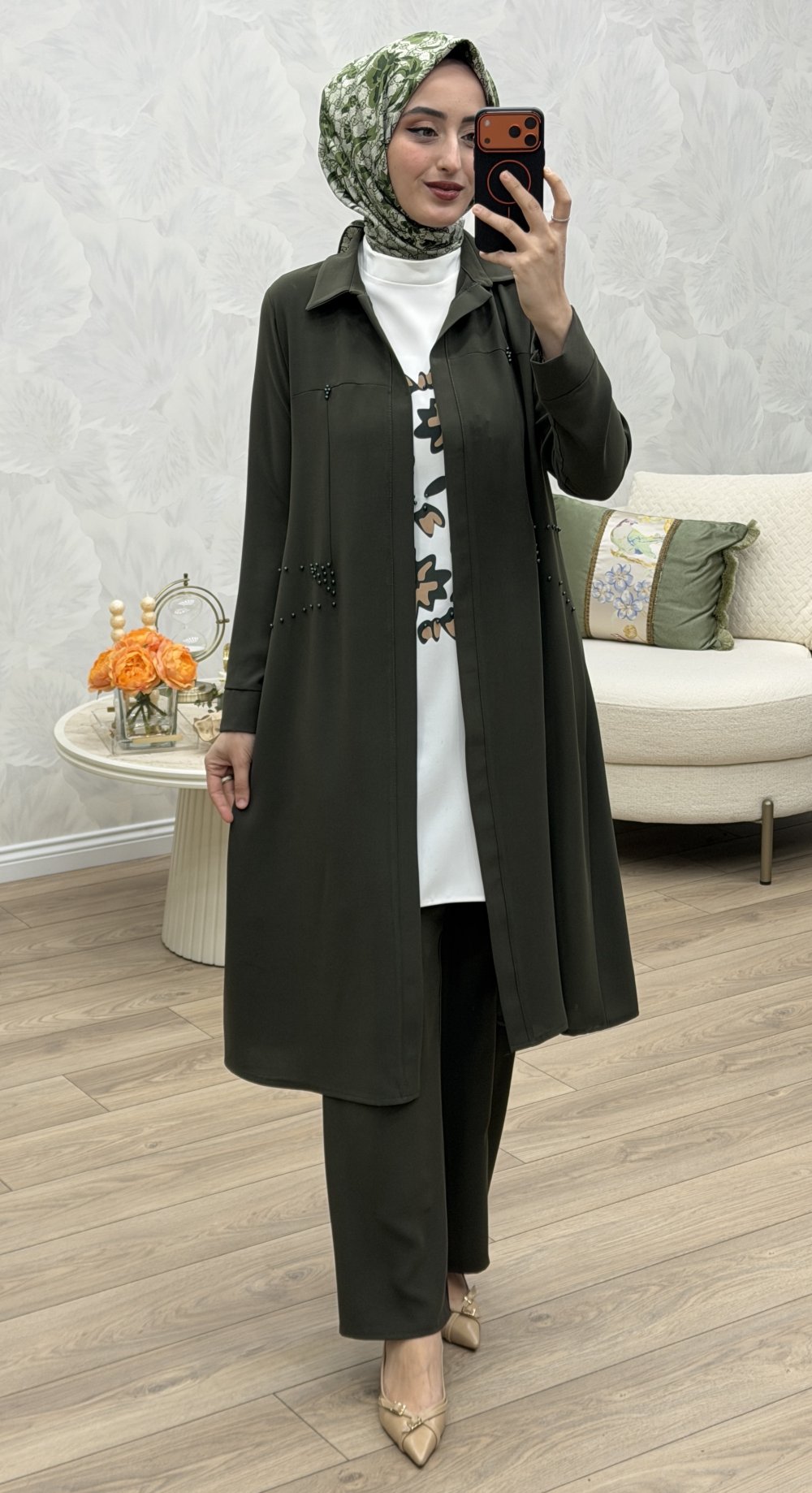 Pera 3 lü Takım,hem iş hem de günlük hayatınızda rahatlıkla tercih edebileceğiniz çok yönlü bir parçadır. Şıklığı konforla buluşturan bu tasarım, sezonun en gözde modellerinden biri olacak