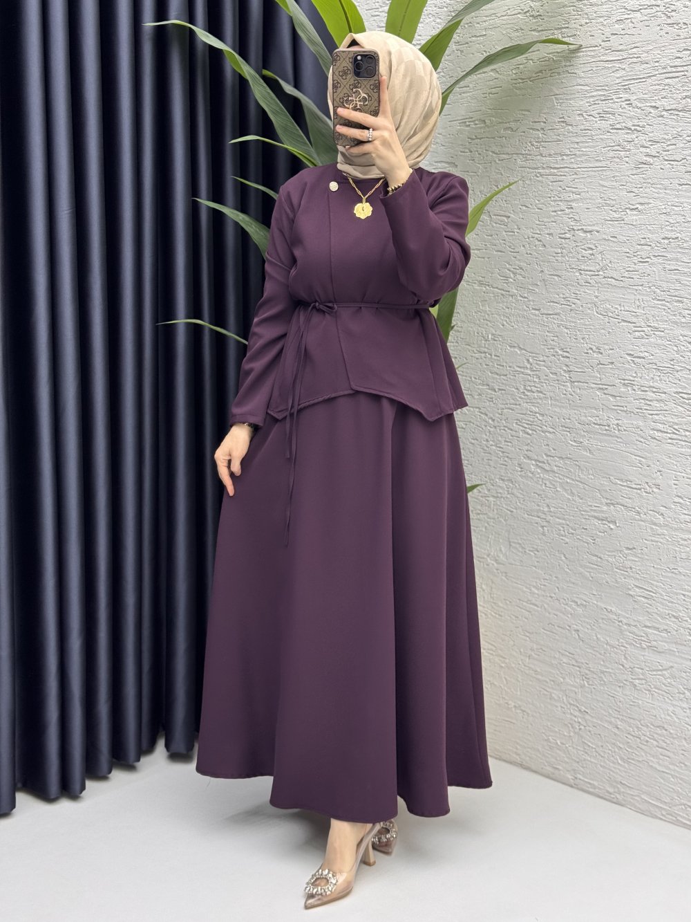 Pera Etekli Takım Tesettür Giyim Mürdüm