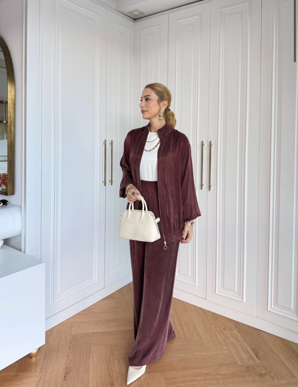 Petek Pantolonlu Takım Bordo