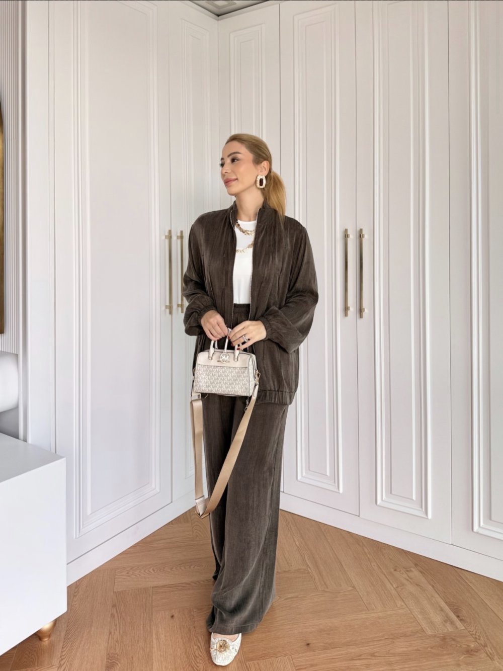 Petek Pantolonlu Takım Kahverengi