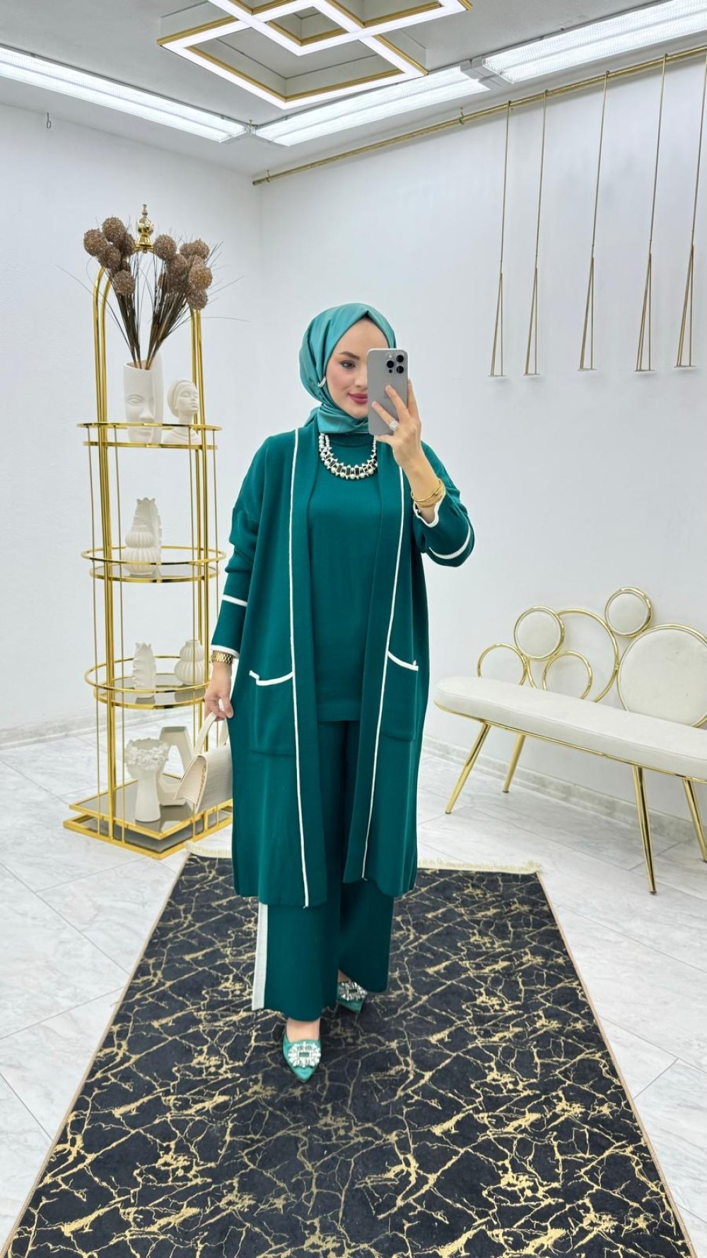 Petrol Havva Üçlü Triko Takım Tesettür Giyim