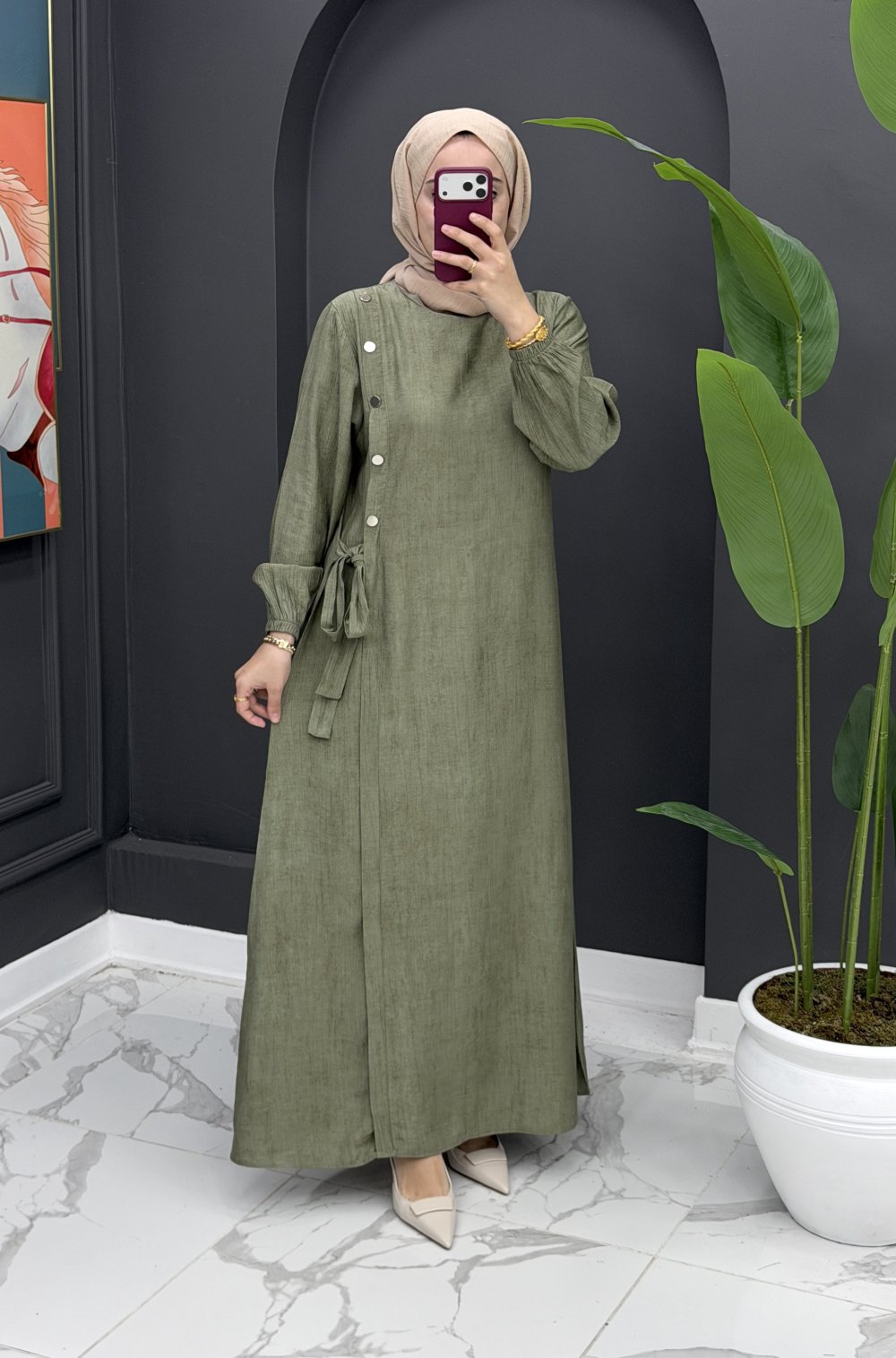 Puane Elbise - Yeşil Yeşil
