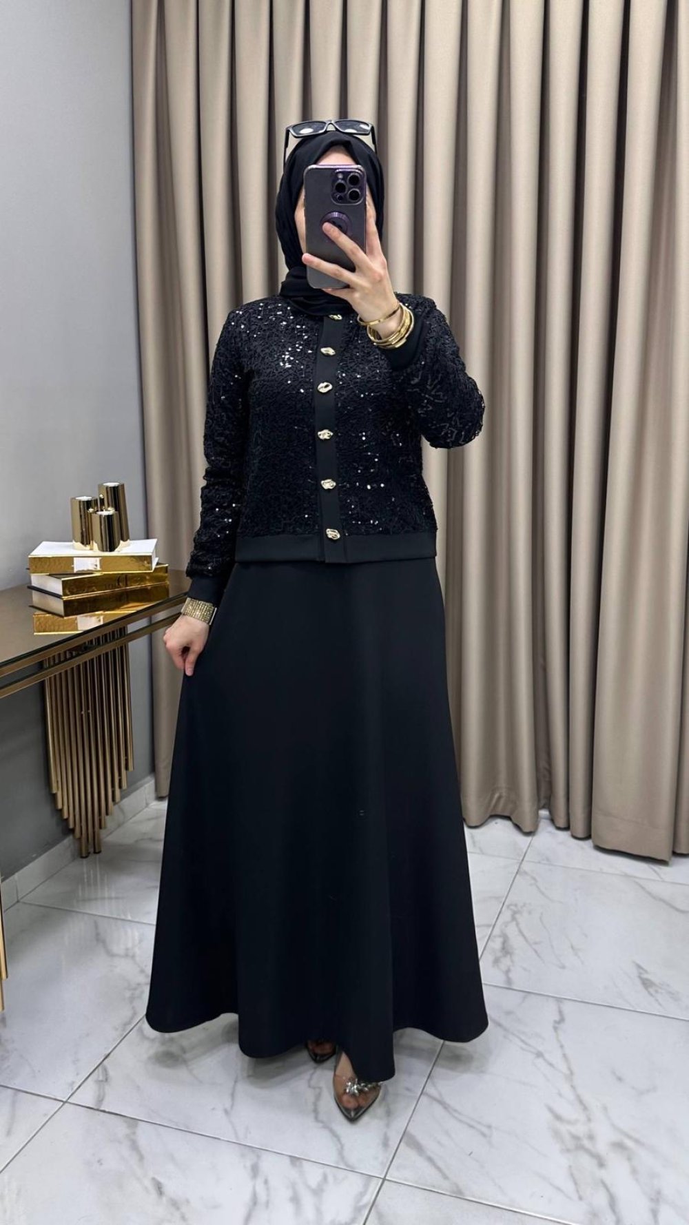 Pullu Etekli Takım Siyah Siyah