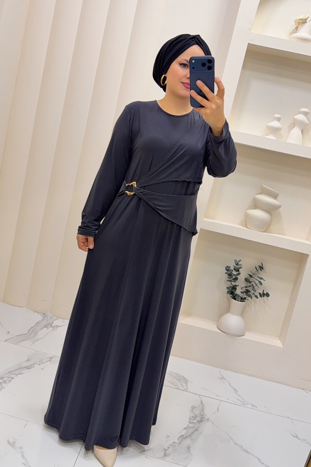 Sandy Büzgülü Ayben Elbise Gri