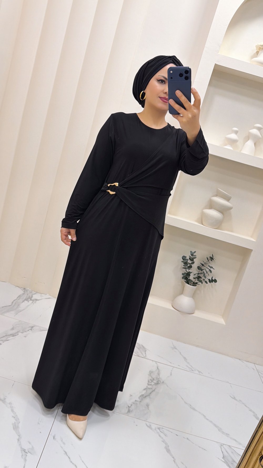 Sandy Büzgülü Ayben Elbise Siyah