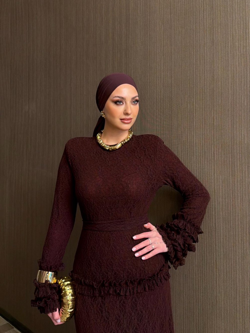Kollarında ve eteklerin de Fırfır detayları vardır.