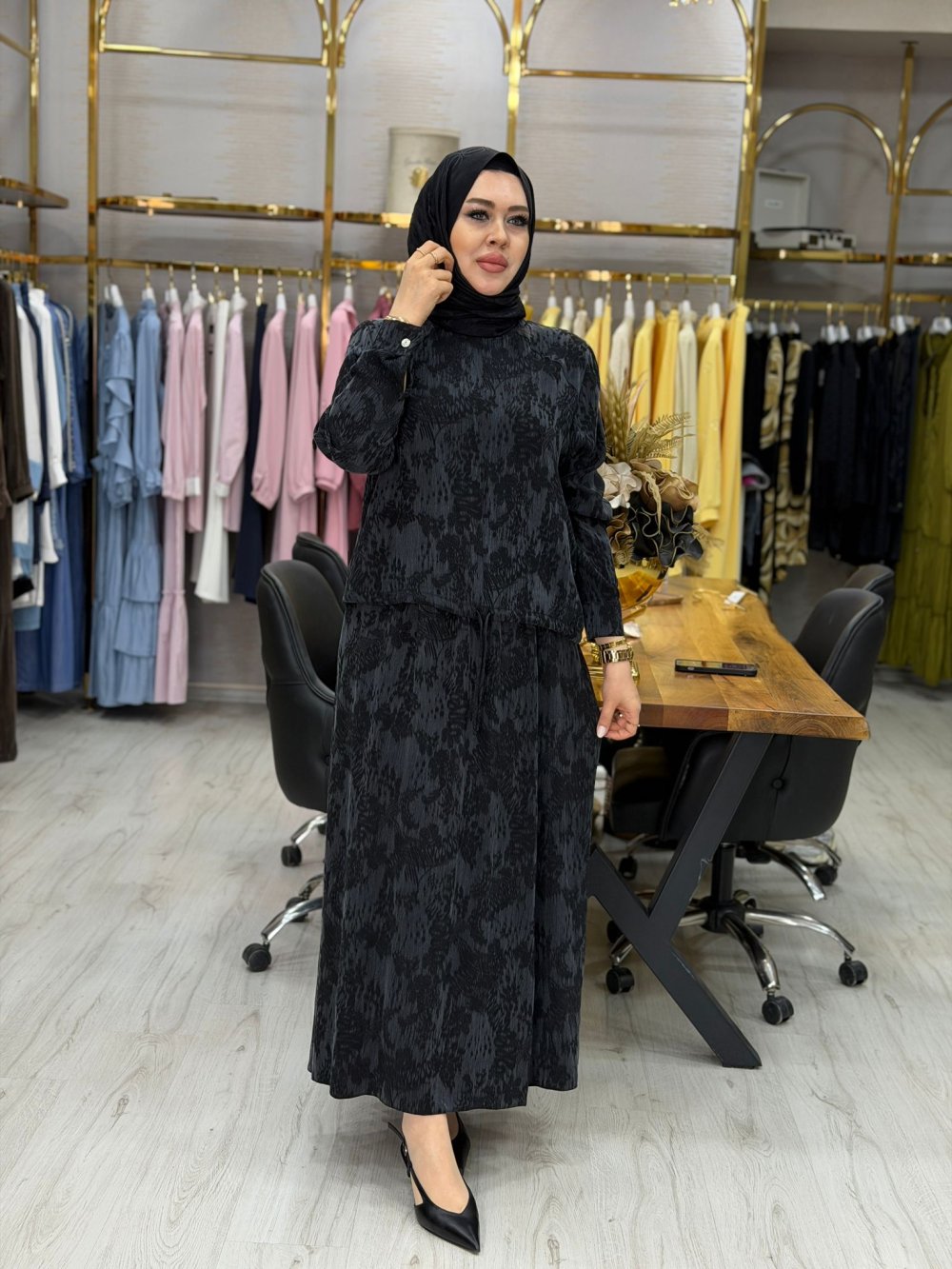 Kumaşı taşlanmış ipek qupradır. Tunik arkası yarım fermuarlıdır. Etek