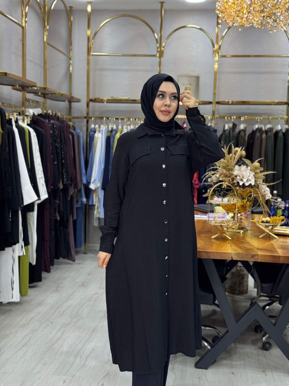 Selen Gömlek Siyah Siyah