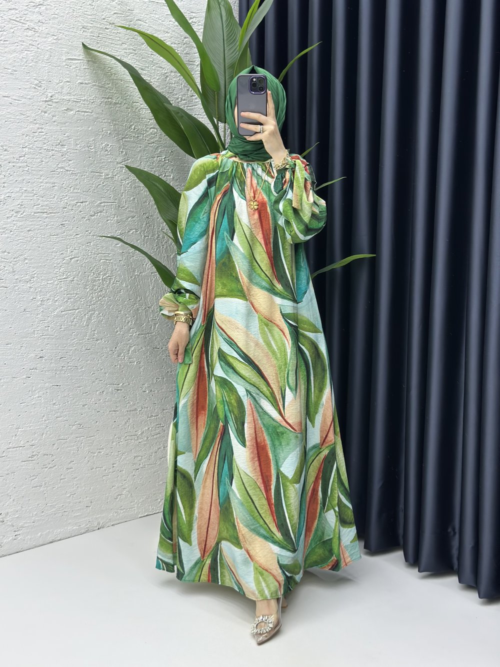Selin Tesettür Elbise Zümrüt
