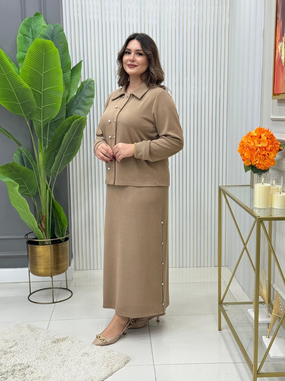 Selvi Etekli Takım Camel