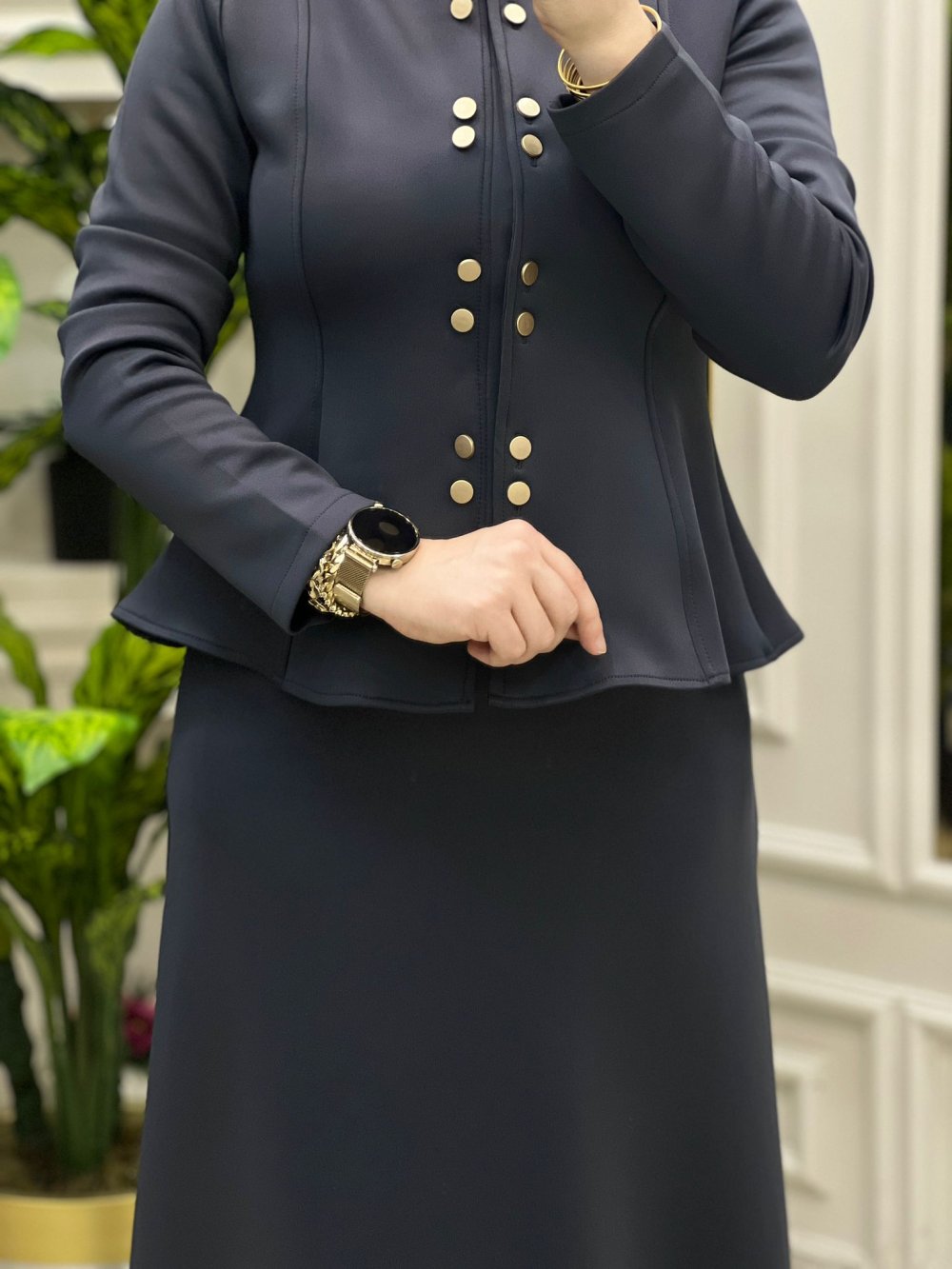 Senem ikili Ceket Etek Takım Efsane rahat uzerinizde yokmus gibi hissedeceksiniz hanımlar Senem takım kod.13147 Ceket önden düğmeli açılabilir şekilde Fiyat kargo ücretsiz Beden 38 40 42 44 Kumaş Türü: Dalgic esnek likrali kumaş Ceket boy: 50cm Etek boy: 93.95cm Etek beli fermuarlıdir