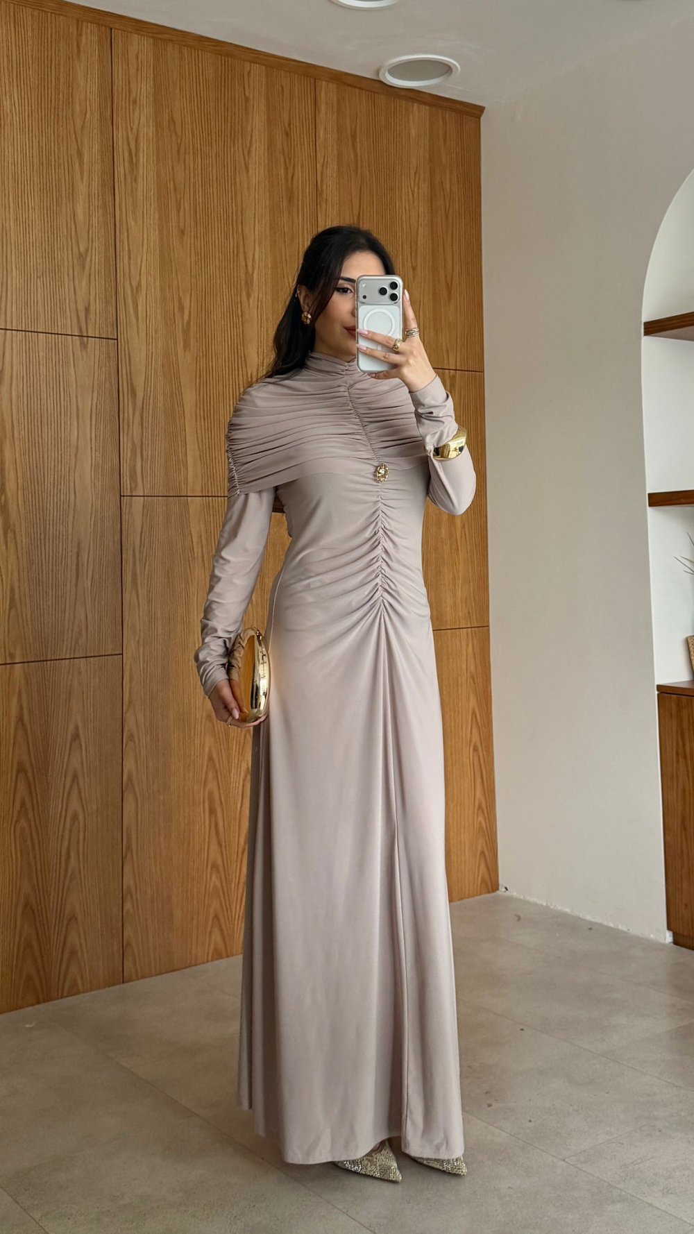 Elbise Göğüs Ve Beli Büzgü Detaylıdır.