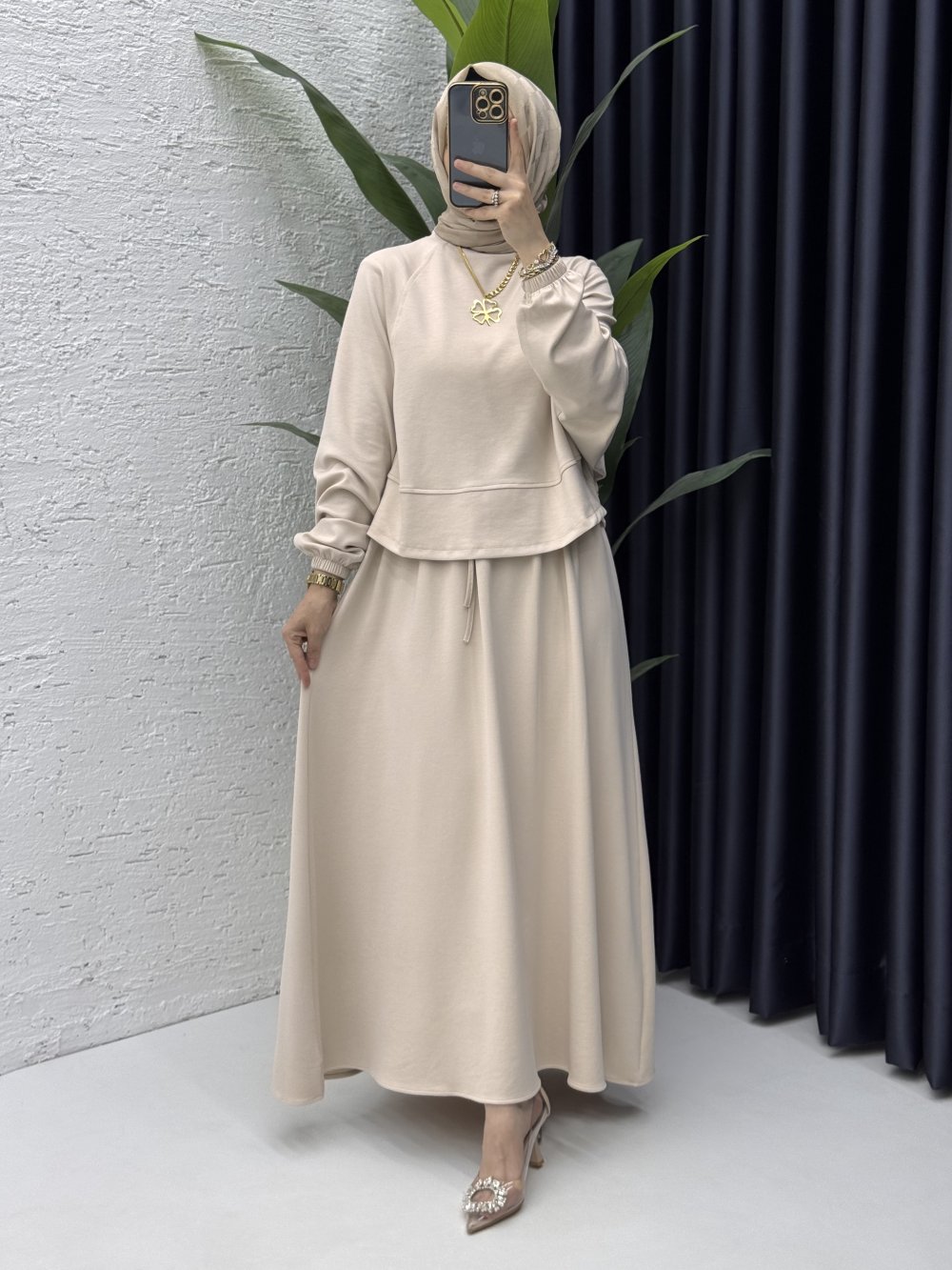 Sezin Etekli Takım Tesettür Giyim Taş Rengi
