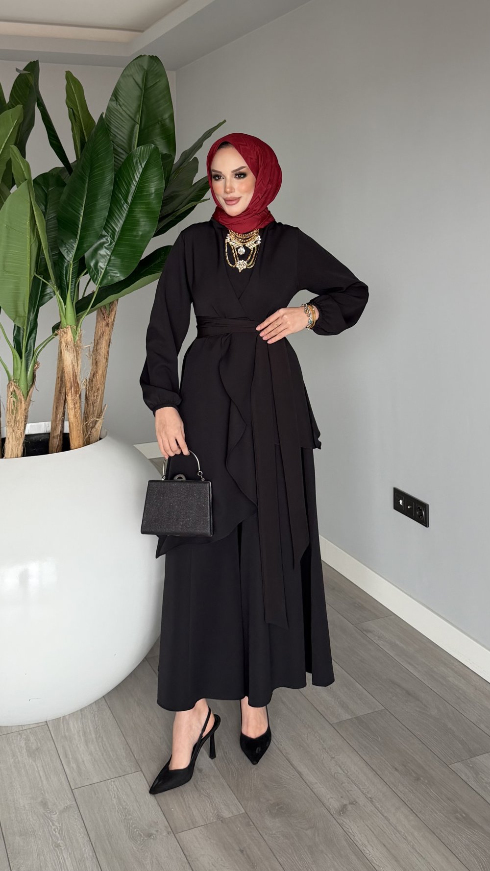 Siyah Cevher Pantolon Takım Tesettür Giyim