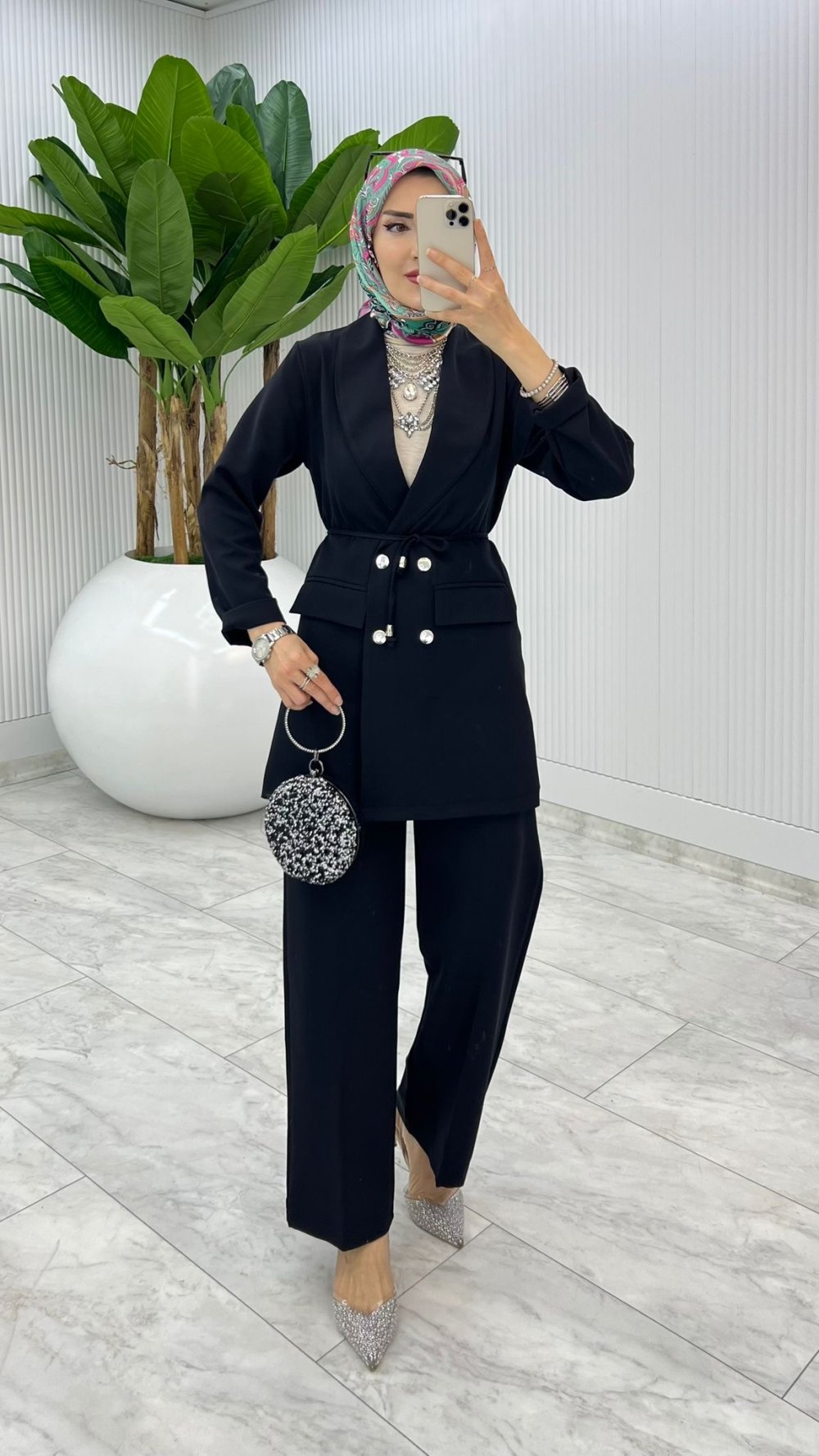 Siyah Hande Ceket Takım Tesettür Giyim