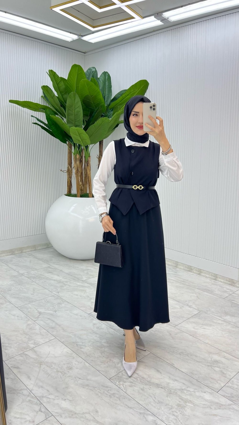 Siyah Kemerli Selvi Takım Tesettür Giyim