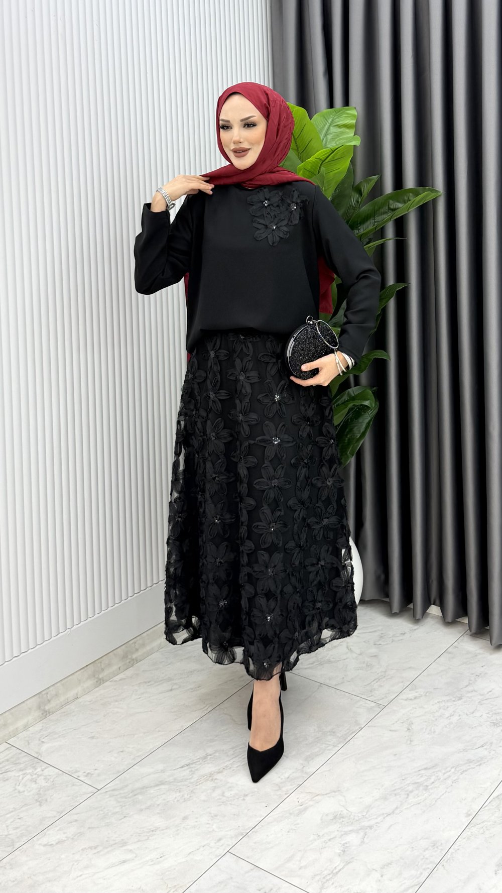 Siyah Orkide Etek Takım Tesettür Giyim